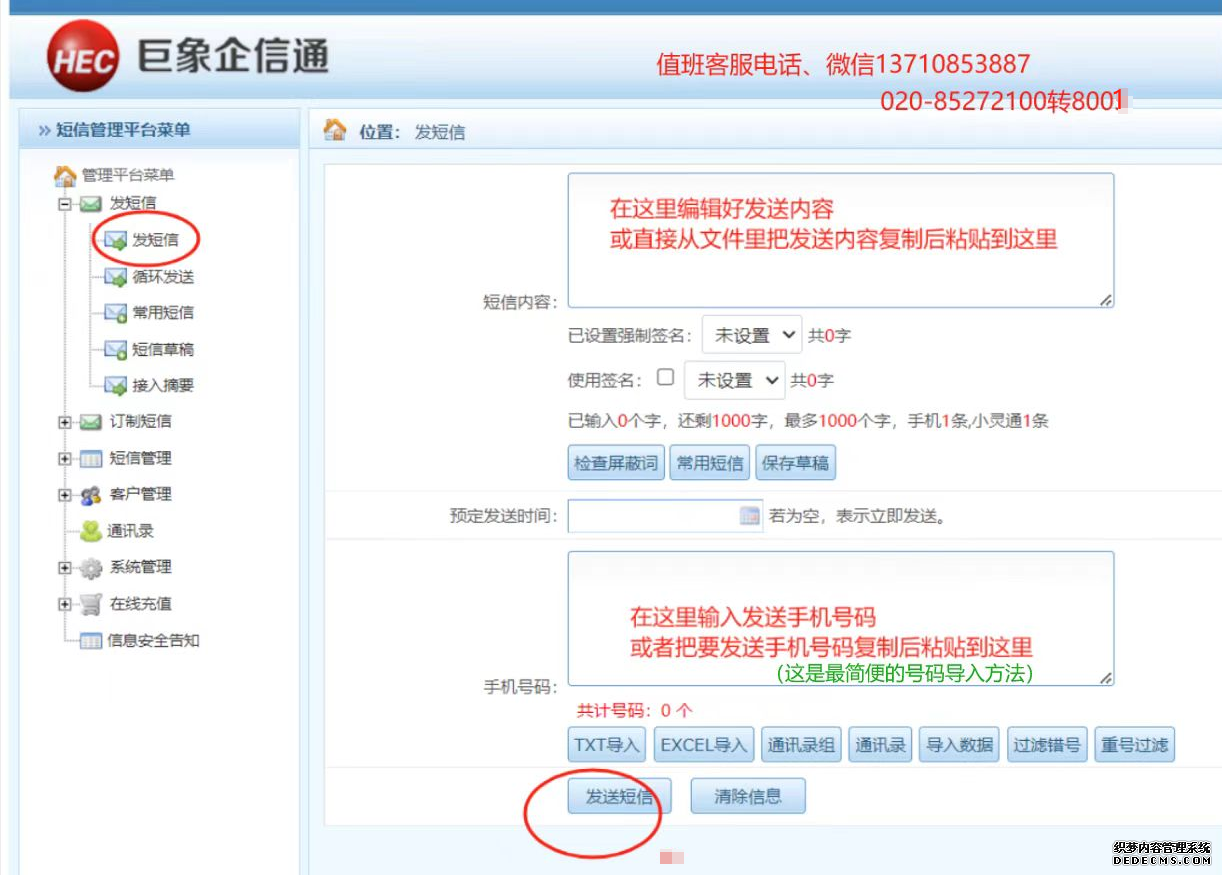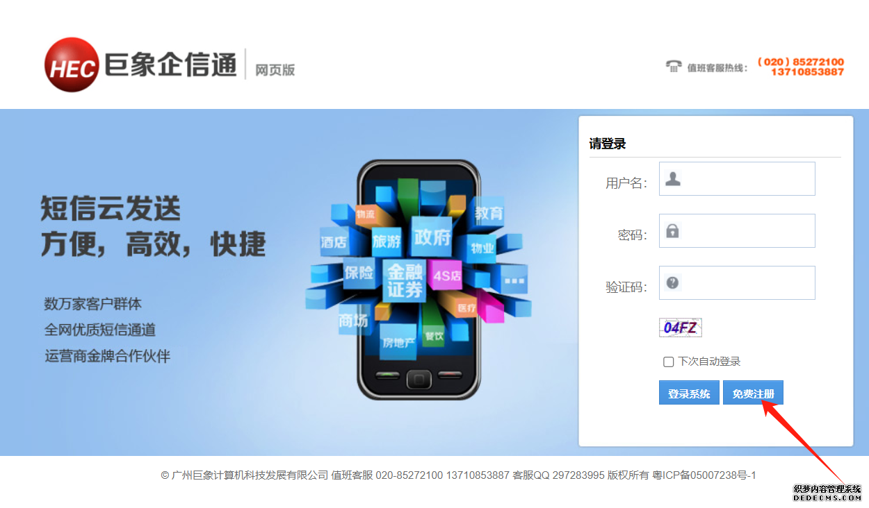 一、發送招工短信、招聘短信,首先用電腦或手機登錄巨象短信群發平臺首頁